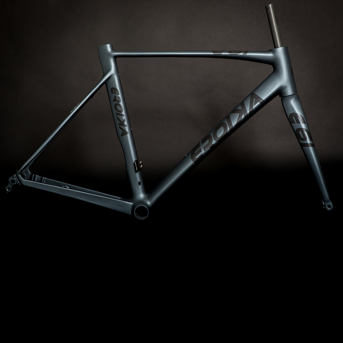 Eroika E61 frame is the latest evolution of our modern E76 model, whereas the E76 has an aero profile traditional shaped vertical profile seat tube, the E61 has an oversized curved seat tube. The seat tube profile at the bottom bracket is wider, allowing us to build an even stiffer frameset. We have also modified the downtube and top tube for even greater strength, not only in terms of profile, but also in terms of construction. Each tube is made with a unique mix of layers of carbon and added Kevlar, using the very best carbon money can buy (sorry we wish to keep the exact details secret for now) the result is a frame which offers the absolute maximum in performance. If the E76 was a rocketship the E61 is a starship ready for warp factor 9!